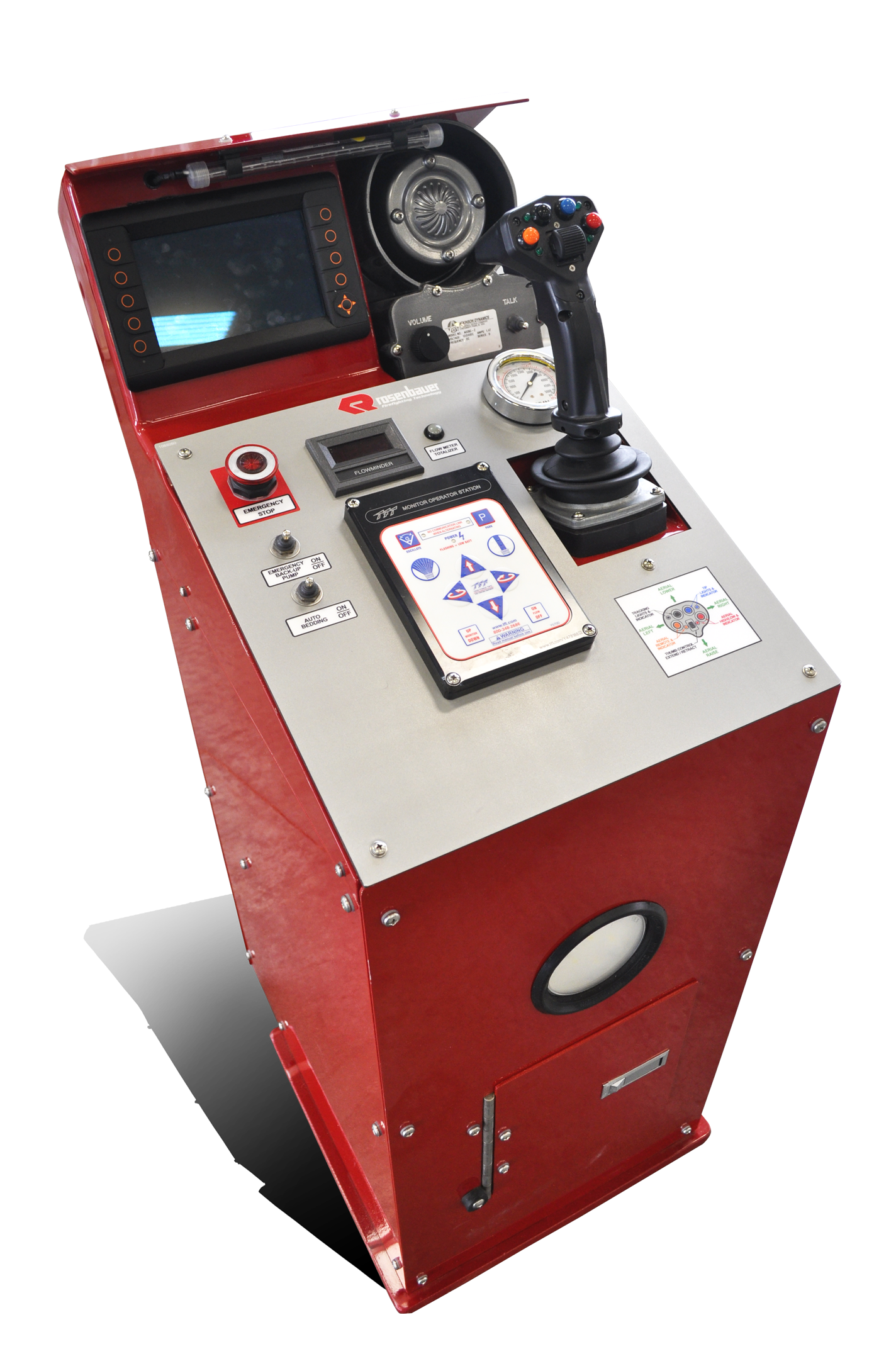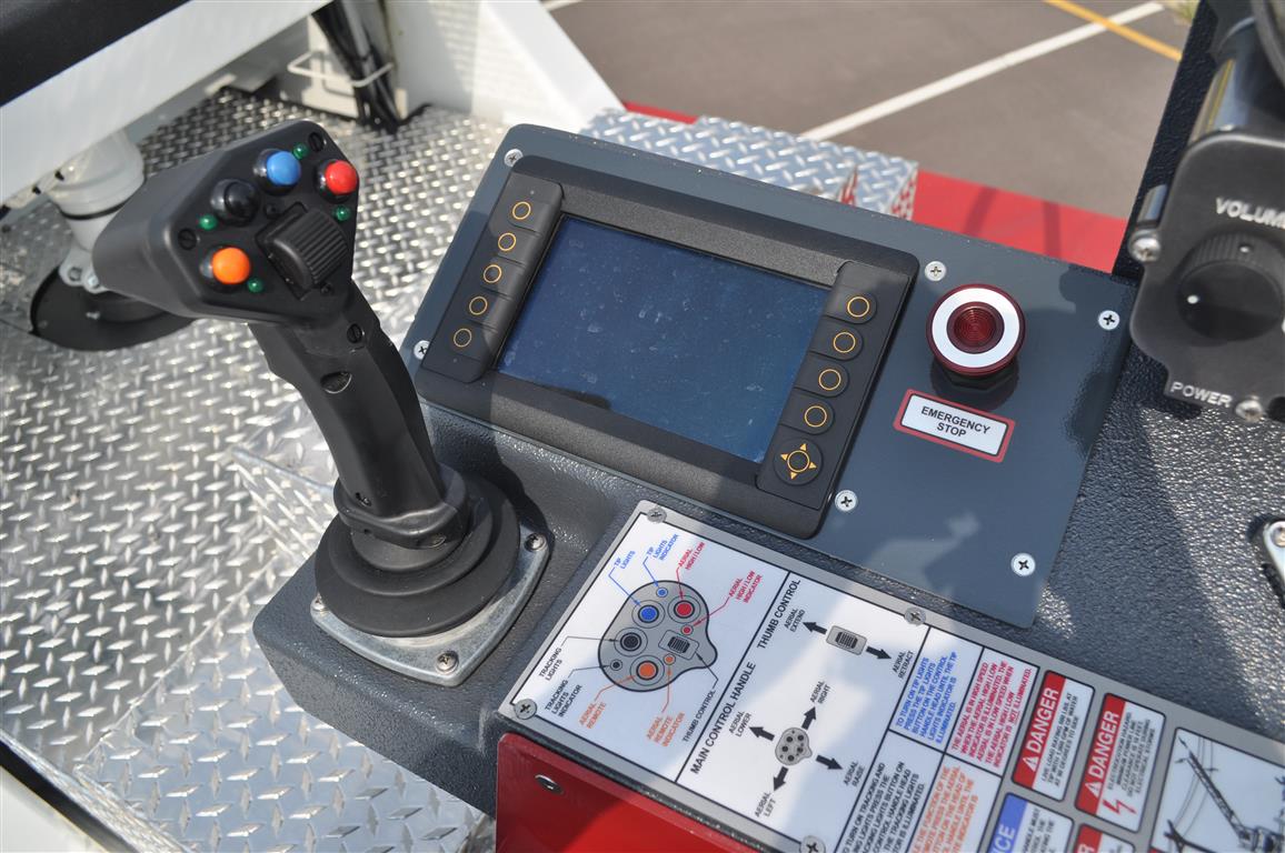 A sturdy all aluminum operators pedestal with the joystick controller and smart screen. The Aerial Command Pedestal provides the same functional aerial operations for departments whom prefer the standing duty position. The pedestal is equipped with a hinged cover to protect the joystick and smart screen during travel.