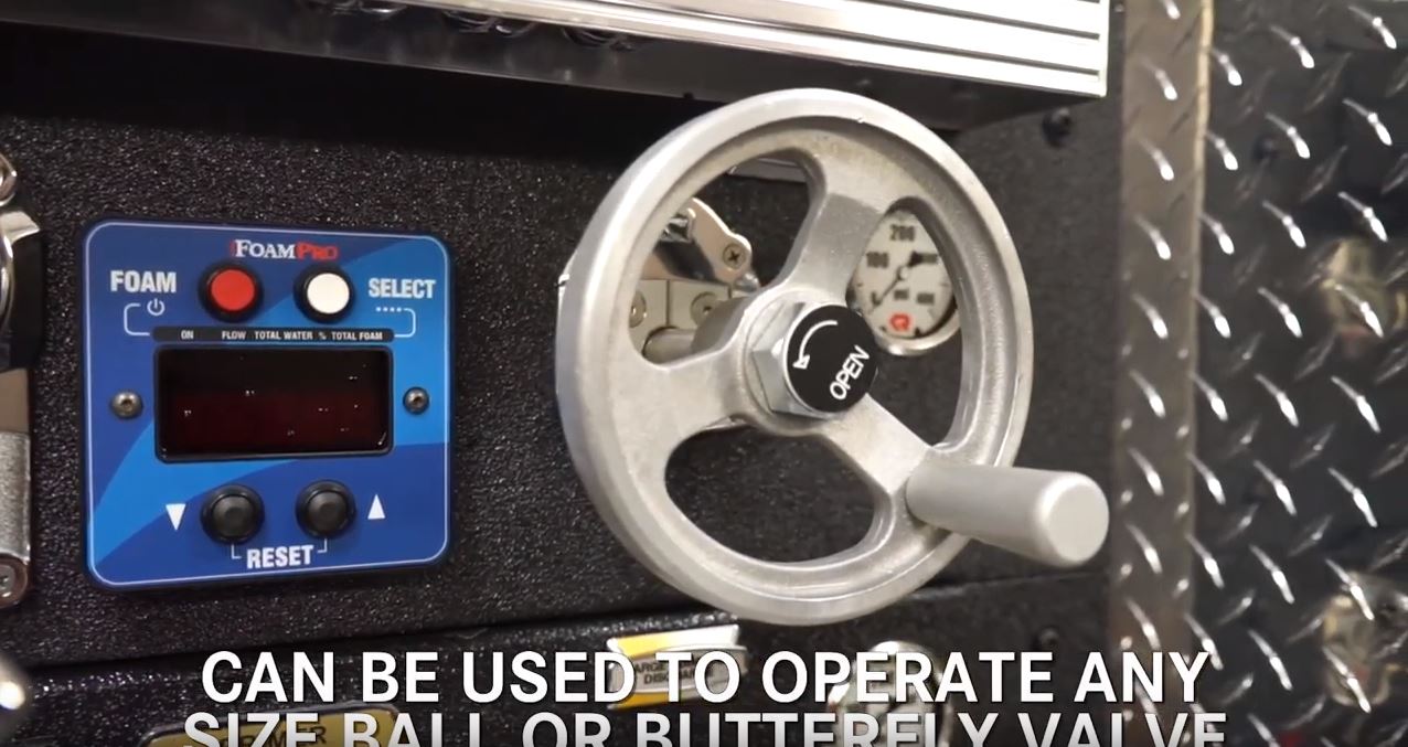 Rosenbauer's exclusive rising stem handwheel valve control maybe used on any valve. Very easy to operate and precisely control the pressure. As the stem rises the valve moves to the open position and conversely as the stem retracts the valve closes. A very stable, durable solution at a cost efficient price.