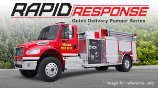 Rosenbauer offers the Rapid Response series utilizing Freightliner M2-106 chassis with a 350 hp engine. Departments will select from premium apparatus options such as painted-roll up doors, adding a foam system or custom striping.