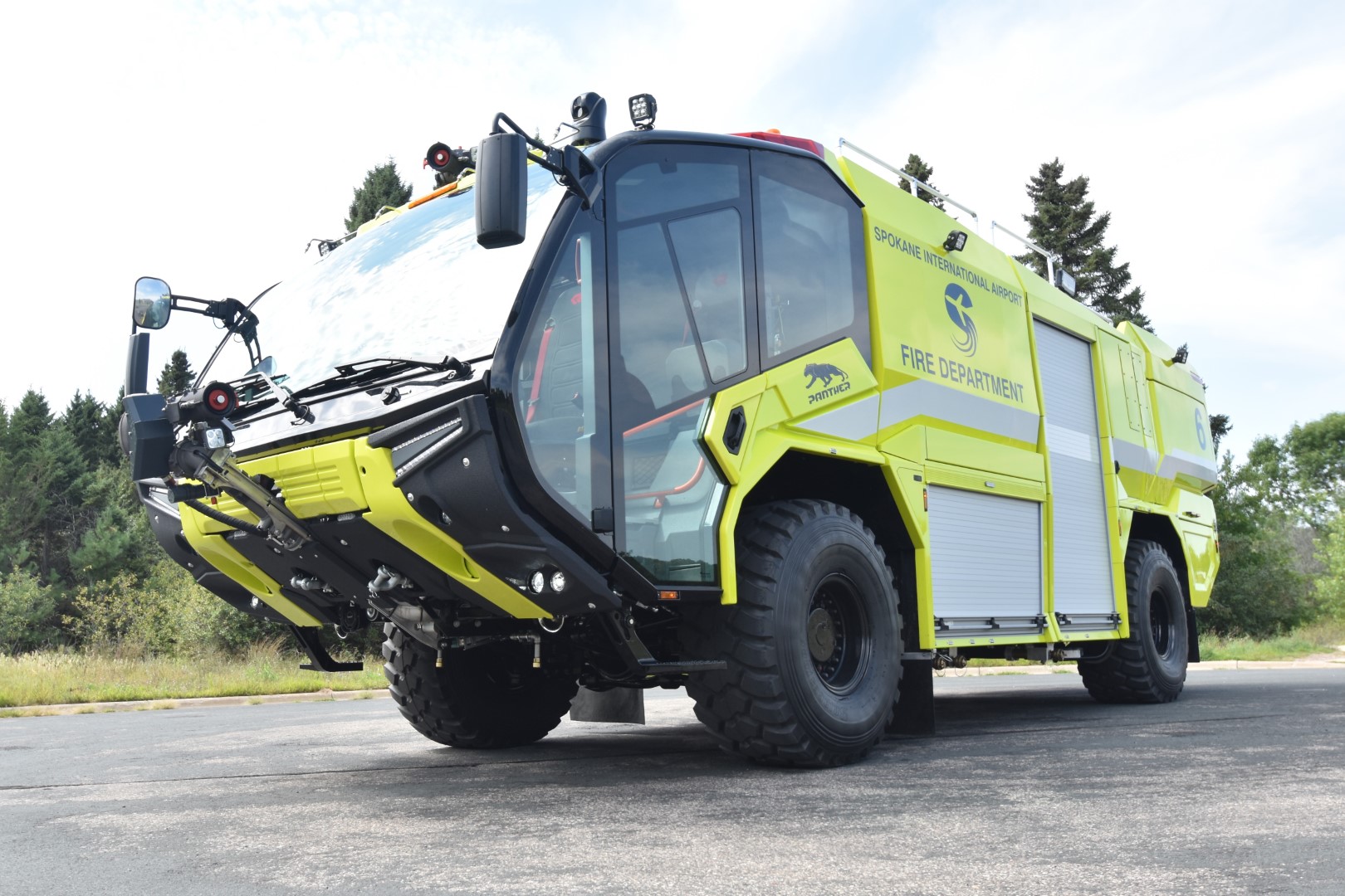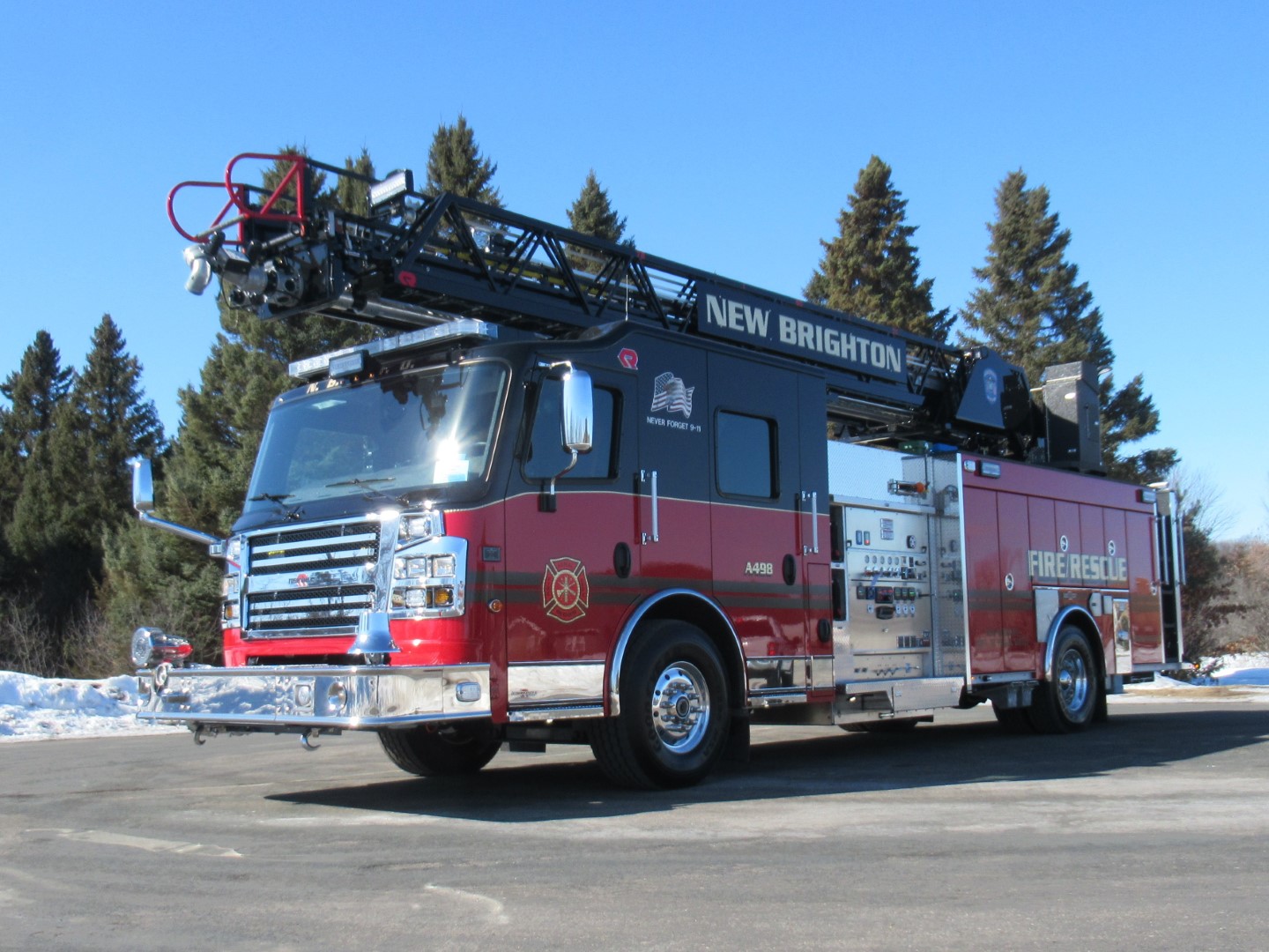 Rosenbauer introduces the 100’ Viper SA (Single Axle) at its annual dealer meeting in Sioux Falls, South Dakota. The 100’ Viper SA is equipped with a 1500 GPM pump, and a short 16’-6” jack-spread.