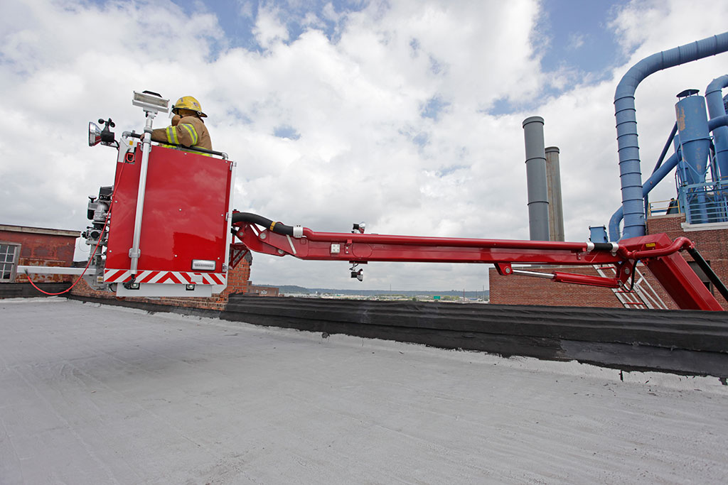 The T-Rex’s 18’ jib boom allows you to go up and over parapets where other aerials simply can’t go.