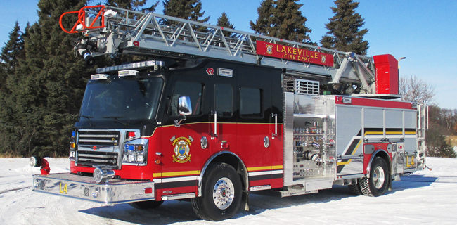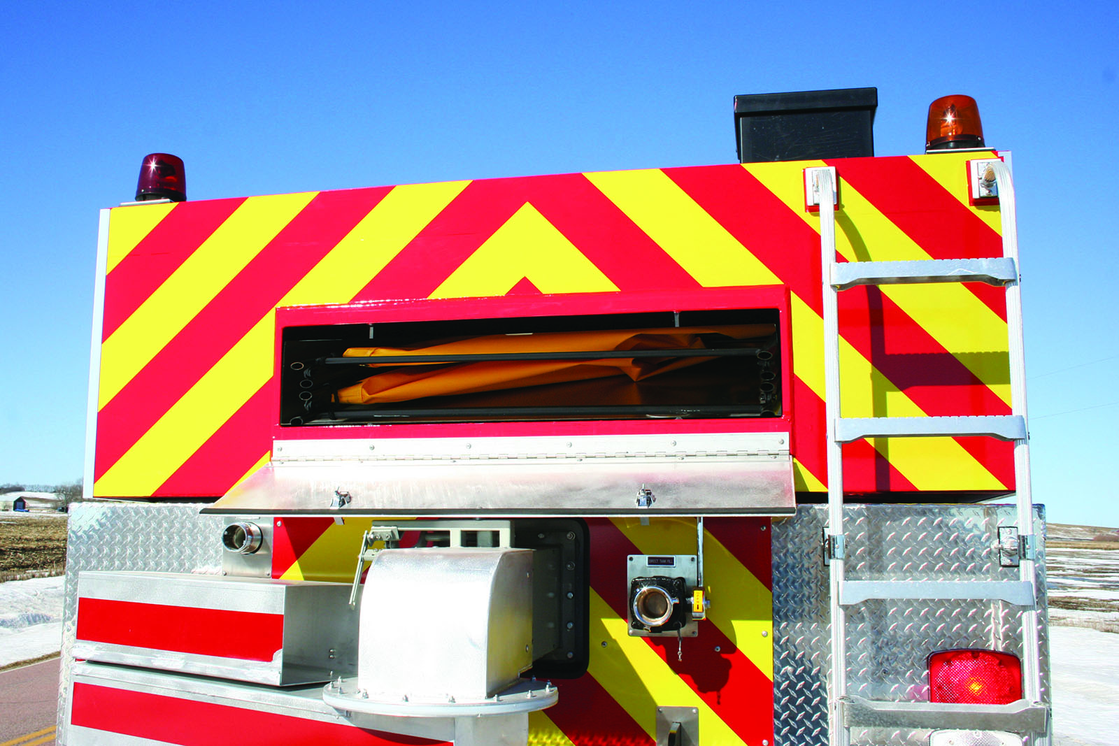 Practical metal frame side racks to enclosed power lifts, Rosenbauer can customize your drop tank storage.